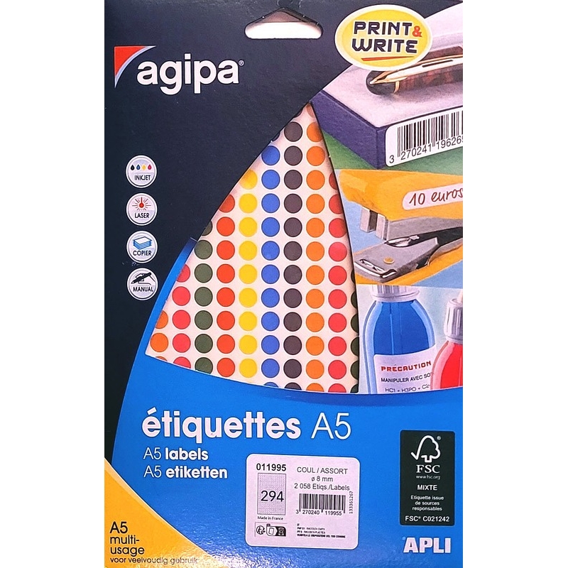 Emballage de 2058 étiquettes rondes autocollantes adhésives.